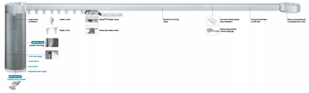 - Touch Motion feature, to open and close the curtain simply by pulling on the fabric.