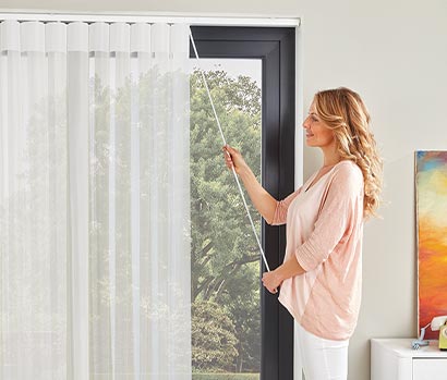 If you’re looking to create an instant impact in your home with something a little different then Allusion Blinds would be the perfect choice. Suitable for all window types, Allusion Blinds really come into their own in larger windows and folding doors where their unique flowing fabric vanes allow you to enjoy both light and privacy. The Allusion Blind allows you to quickly adjust between views to the outside and privacy and light control by simply tilting the vanes. The Allusion blind also has the unique feature of being able to walk through the window covering while it its drawn position.